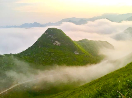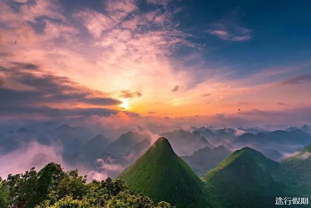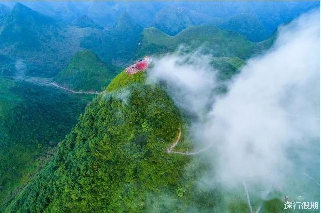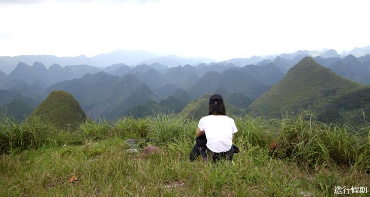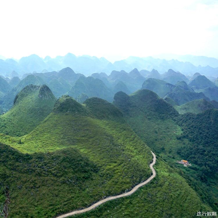 14:30 登顶靘雾山仙娘庙,俯视阳山峰林和英西峰林;