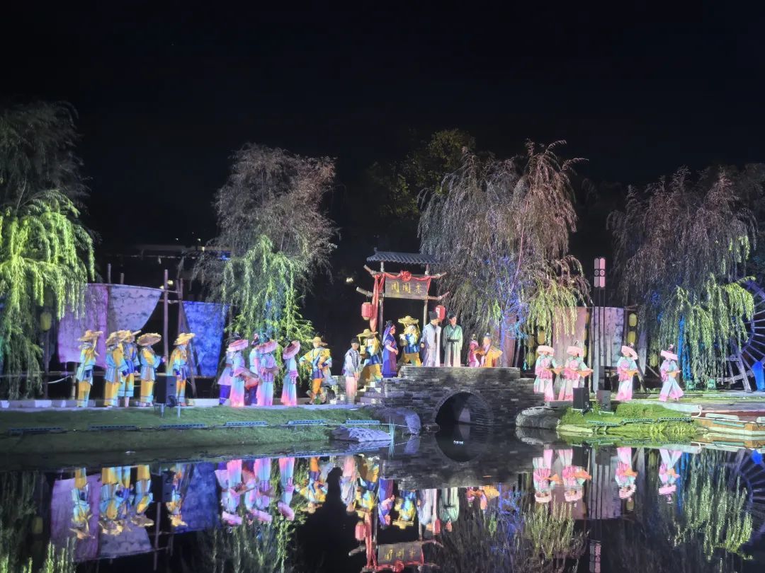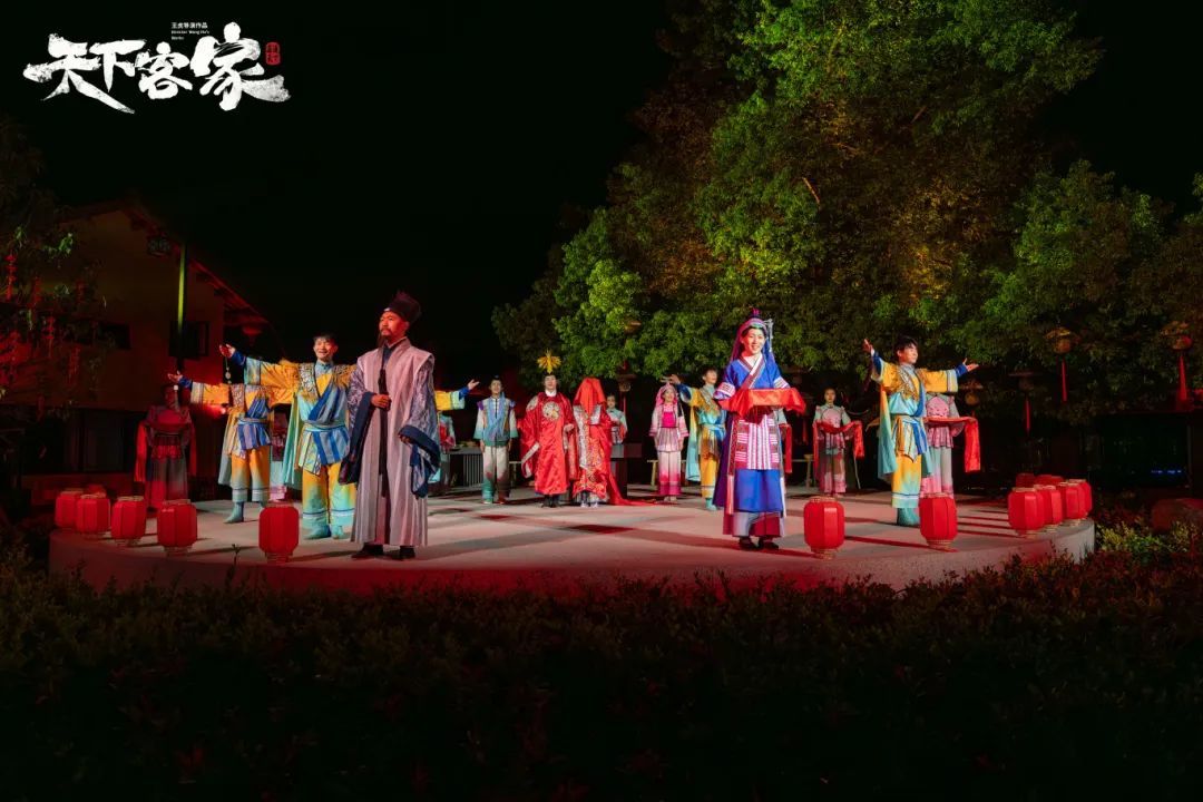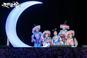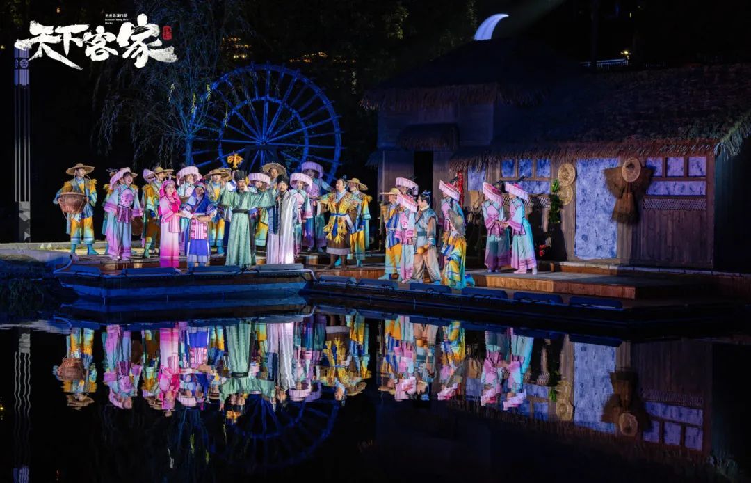 织多彩梦、约定终身月色渐渐升起,客家小伙唱起了客家情歌,妙龄 少女随着歌声在月色下的翩翩起舞,好似夜空中的精灵。他们彼此互诉爱慕之意,定格在月辉之下,情意绵长。