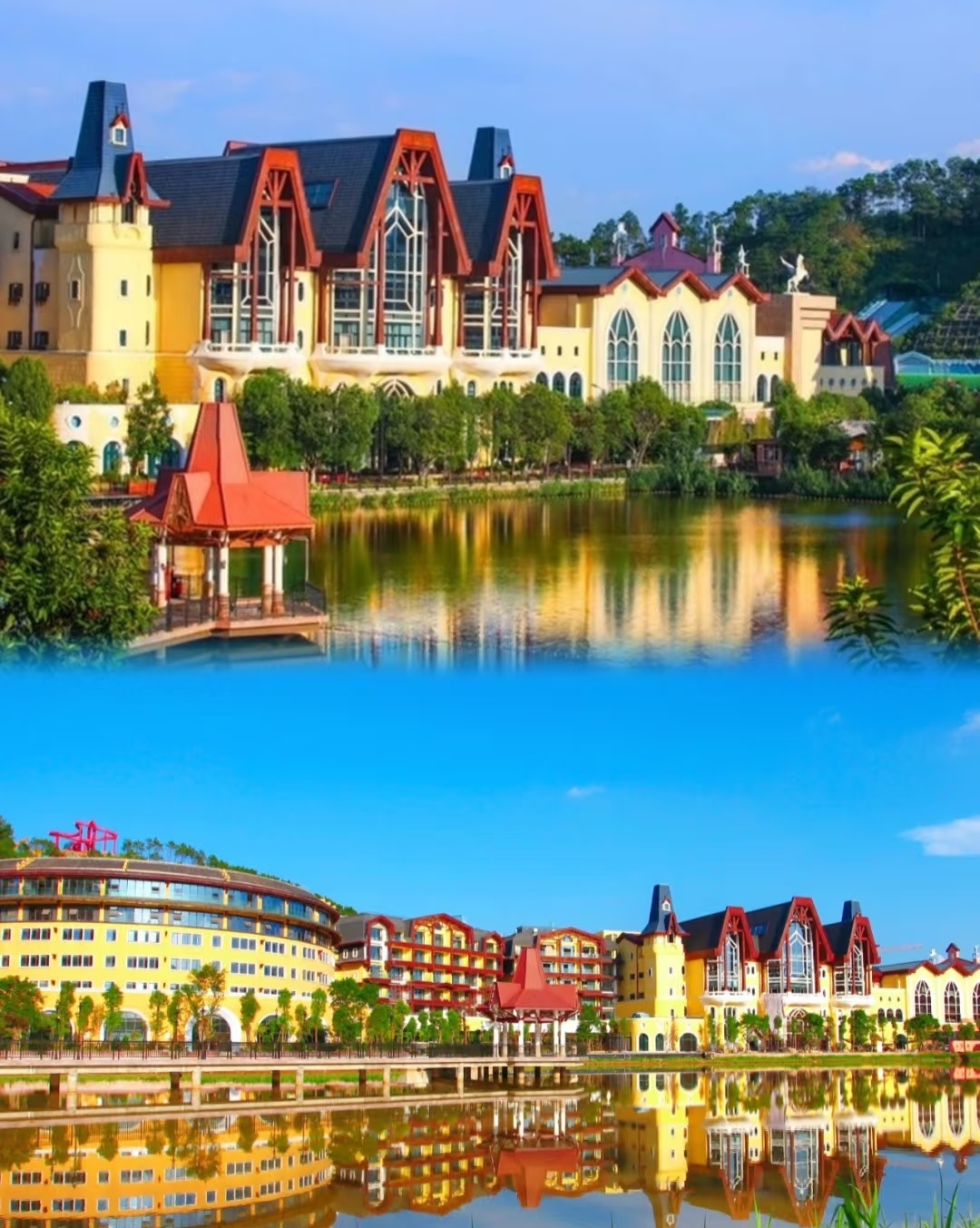 2、万绿湖镜花缘+女儿国表演40元,巴伐利亚大门票+温泉套票98元/人(领队车上收取)