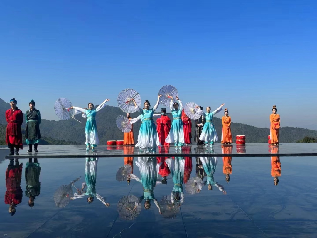摘星玻璃眺台:可眺望武当全景的U型玻璃眺台,平台总面积200余平方米,悬眺跨度22米,置身玻璃眺台之上仿佛与云雾齐肩,伸手便可摘星!