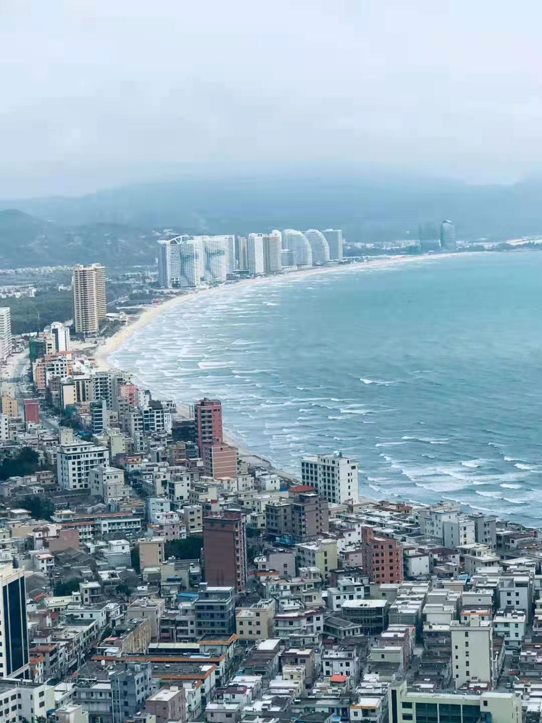 站在观景台,可以看见双月湾全景,左右两个半月,一个是风平浪静,一个是波涛汹涌,挺奇特的风景,远处青山连绵,近处是宽阔的海湾,风景尽收眼底。