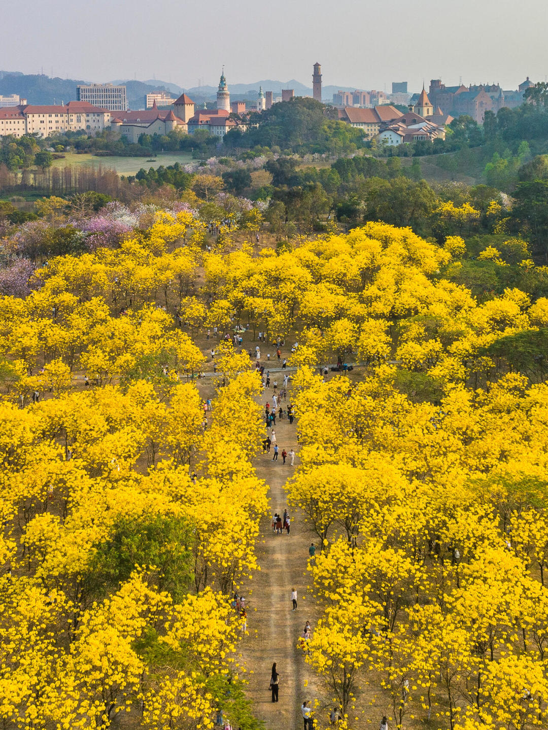 但是松山湖的黄色风铃花才刚刚进入盛花期