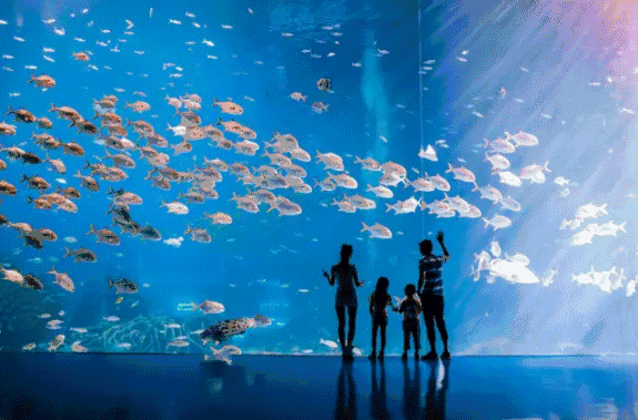 巨大的LED天幕,海洋动物时而在你的头顶游过