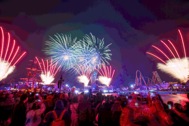 ❤ 烟花大秀:海洋保卫战(核心必看)、烟花幻彩秀、无人机表演、音乐喷泉、水上飞人、夜间汇演