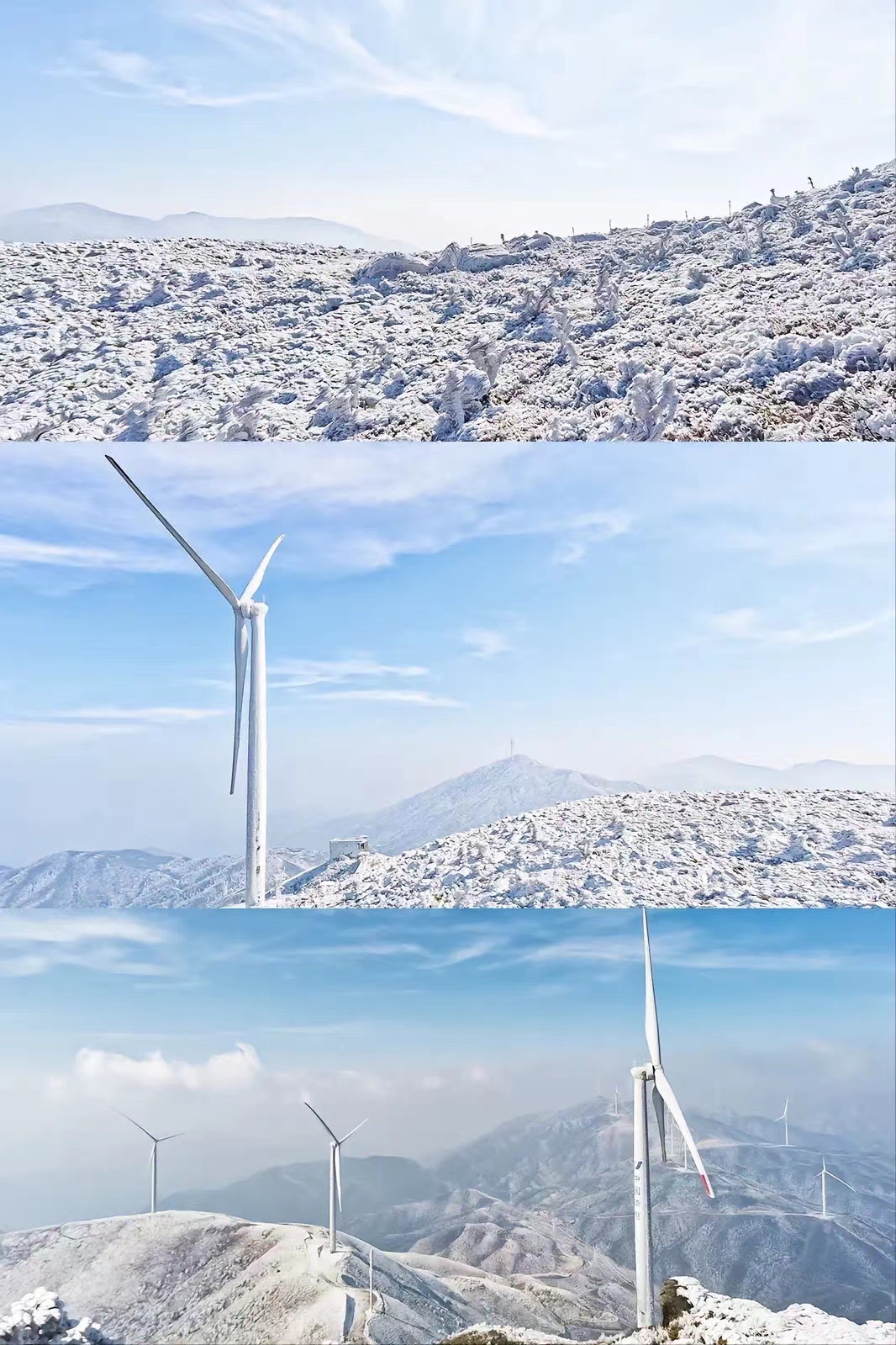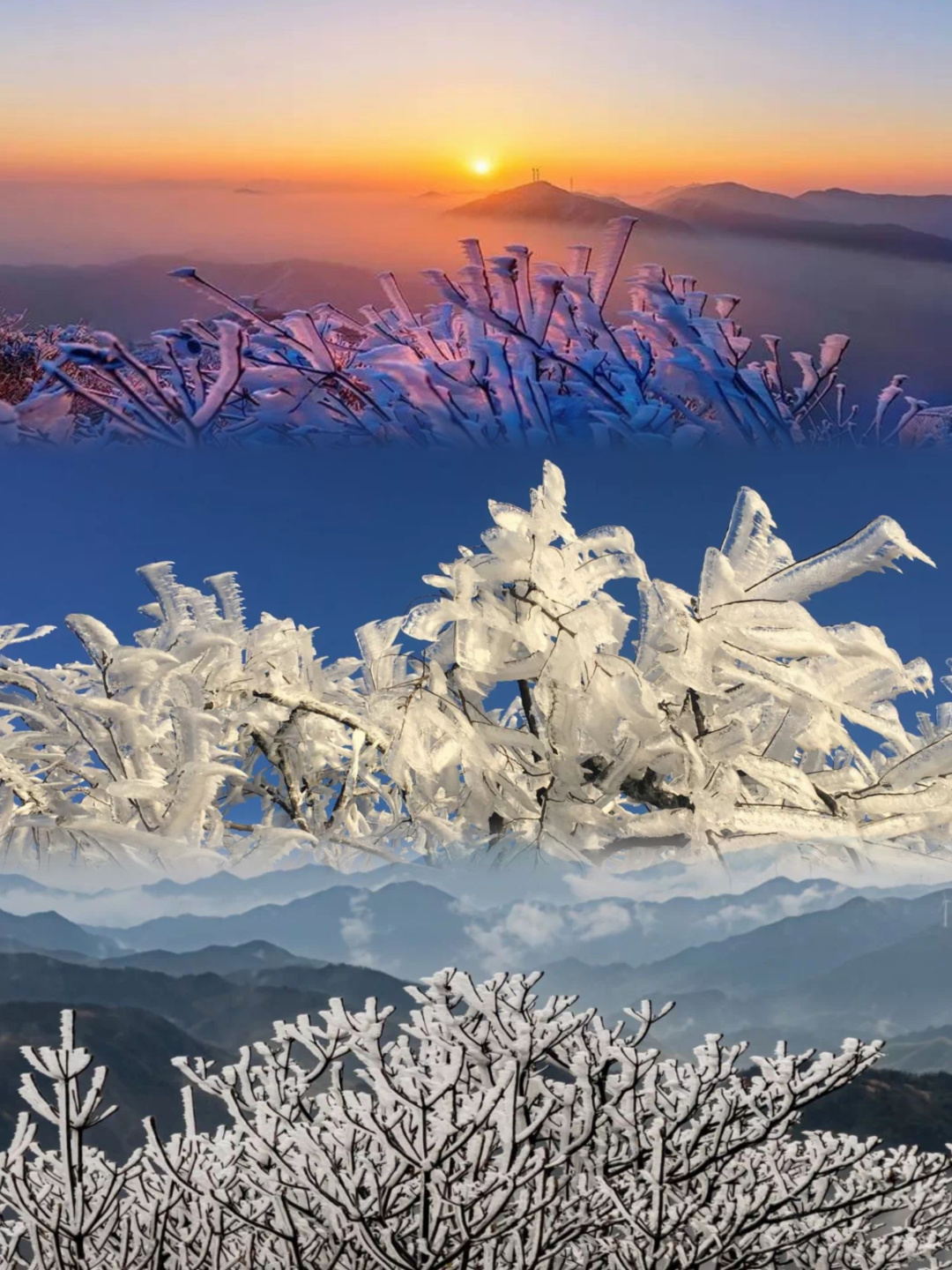 南方雪乡,云的故乡,一山四景,半山雾凇冰挂,山顶雪景云海。