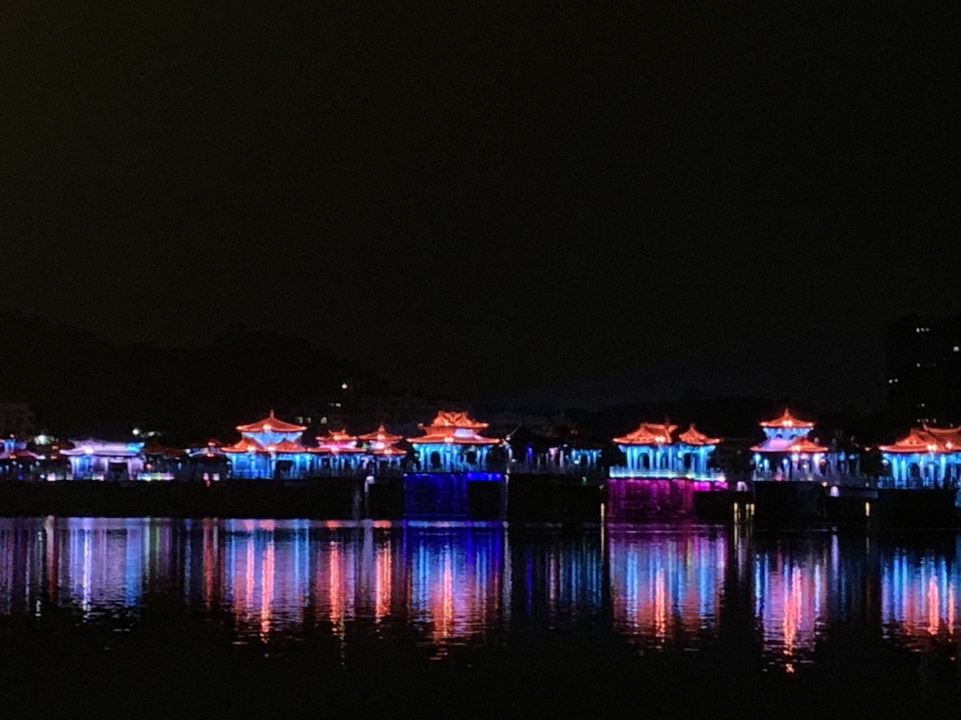 潮州古城灯光秀,韩山映射水波纹、波光粼粼,自然光色与古城风韵结合。诗的意境、画的取景,一江两岸即在画中,又在诗中,俨然有一股水墨乡愁丹青韵味。古城灯光秀是与气势磅礴的潮州音乐紧密结合,绝佳视觉、听觉享受!