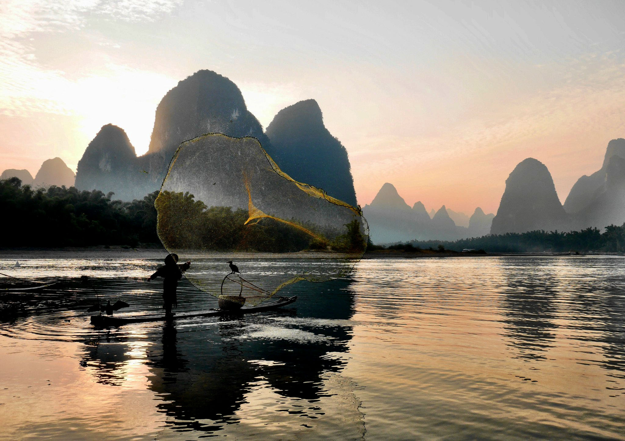 在这里,你可能会遇上那个,带着2只渔鹰(又叫鸬鹚)在漓江边撒网的白胡子老翁哦。