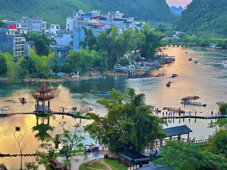12:00 到达,附近解决午餐,后浏览这个隐秘的水上桂林。除了在观景台俯瞰整个湖面的美景,还可在码头坐船漫游渠洋湖,欣赏清澈见底的湖水、成群穿梭的鱼儿,以及如林秀峰。岸边翠竹摇曳,村子炊烟袅袅,孤岛点缀其中,山水相映成趣,景致如诗如画,堪比桂林山水。