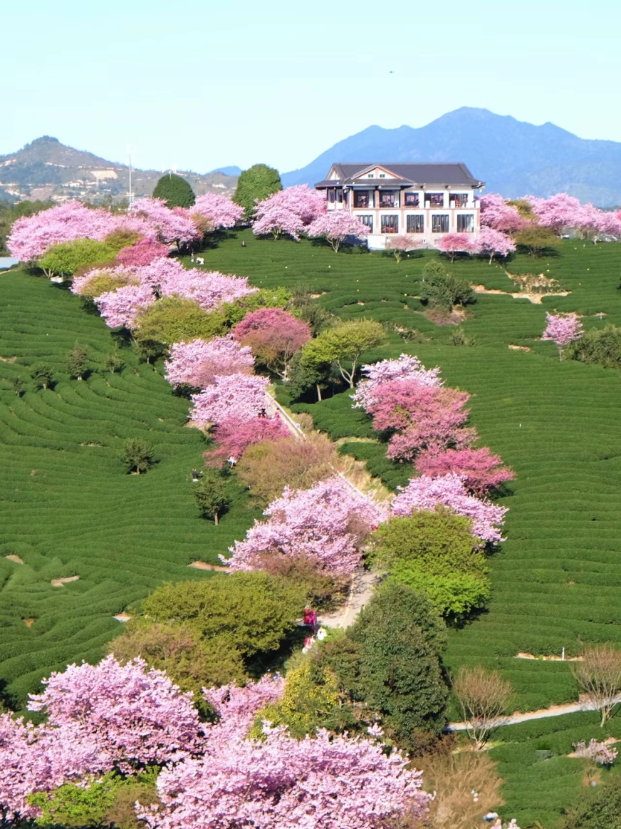 动人樱花与满山茶香交相辉映的独特美景