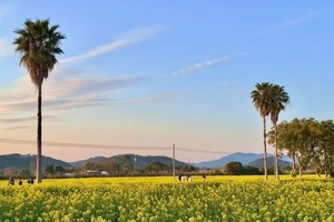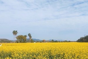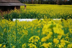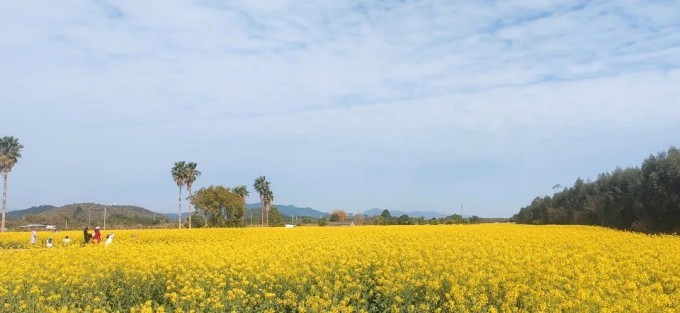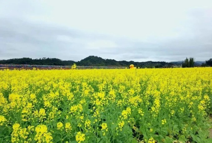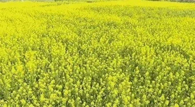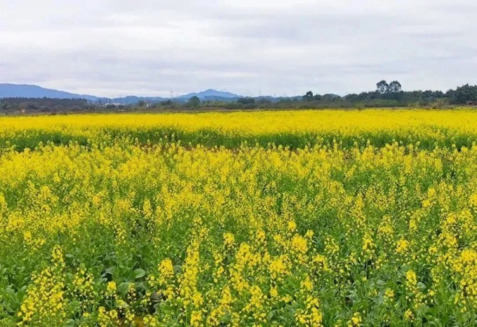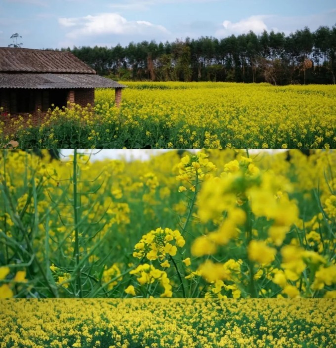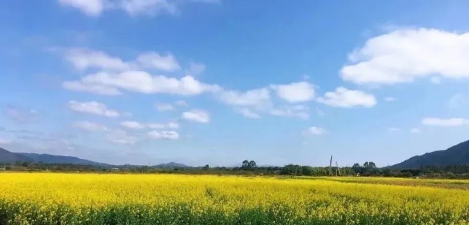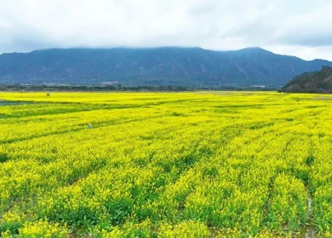 迎来了油菜花盛开好时节。在航拍视野里,近处的金黄油菜花海映衬着远处的峡山顶,极具乡村田野风情