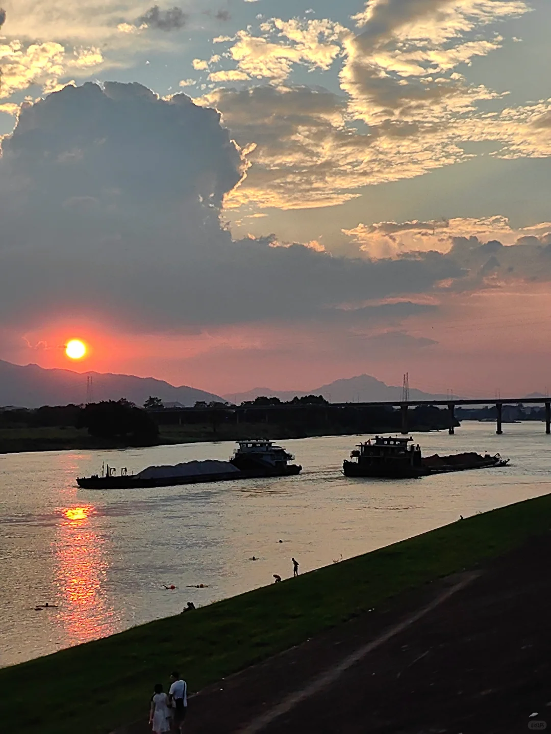 傍晚时分,出来逛江边,打卡《热辣滚烫》同款机位,看风筝、追日落、看晚霞,超出片;