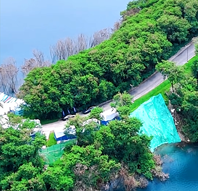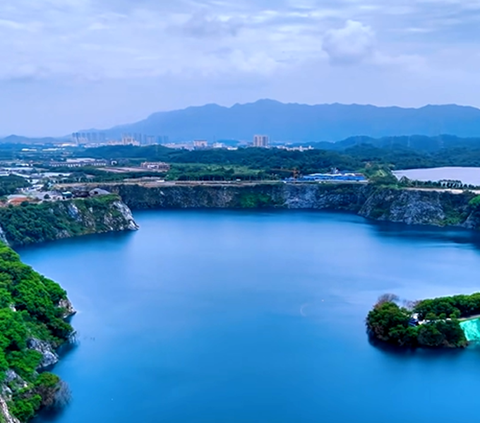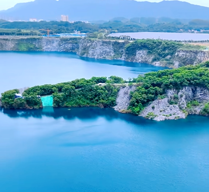 地处佛山三水区南山镇与肇庆四会交界处,原为废弃石灰石矿,2008年关停后矿坑蓄水成湖,造就506亩绝美矿山湖。湖水达地表二类水准,清澈湛蓝,被誉为佛山"蓝眼泪”。
