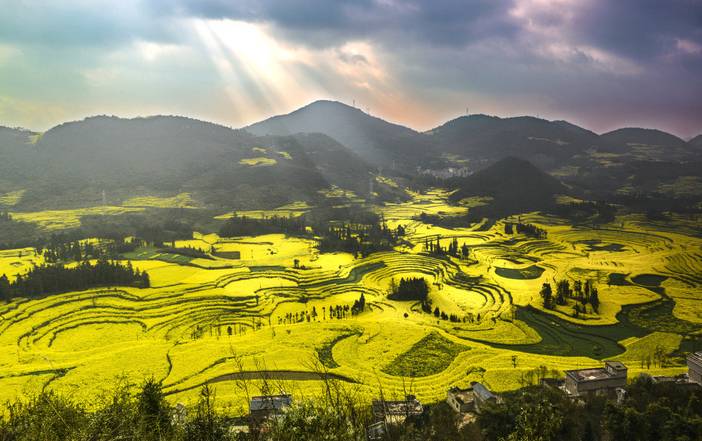 之后前往罗平【金鸡峰从】,此处地方比较灵活,大家可以分开游玩摄影,也可以穿上我们准备的古装,来一组美美的花田服装美照。金鸡峰可以在山头上拍摄,山不高,天气好可以拍摄到耶稣光射到云雾中若隐若现的油菜花以及金鸡峰群中。