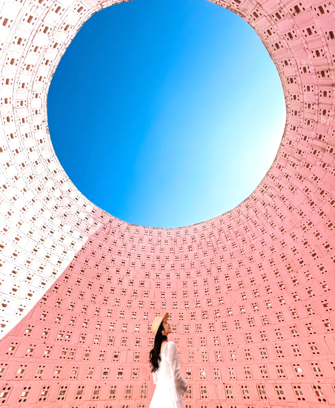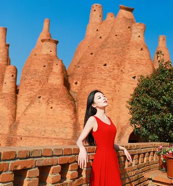 早餐后到达【弥勒东风韵】,东风韵景区里的万花筒艺术馆是弥勒的网红拍照打卡地,建筑风格融合红酒文化、彝族支系阿细人的火文化,酒瓶、火苗状的城堡全部用红砖砌成,因造型奇特而火爆网络,被誉为“魔幻未来主义的魔幻城堡”“离你内心最近的童话城堡”。