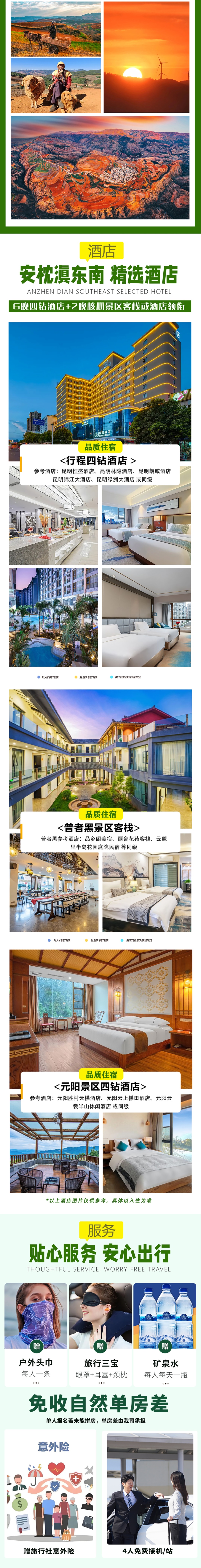 9.【专业负责】:告别传统的跟团游,还原旅行的本真。全程真纯玩,全程无购物及无隐形消费,用心还您一个真正的彩云之南;