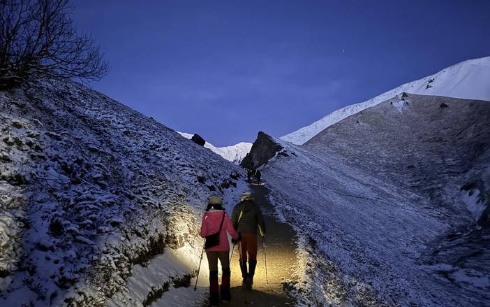 Thorong-La垭口附近风大寒冷,需穿戴防风保暖装备,下山路段陡峭,需注意防滑。
