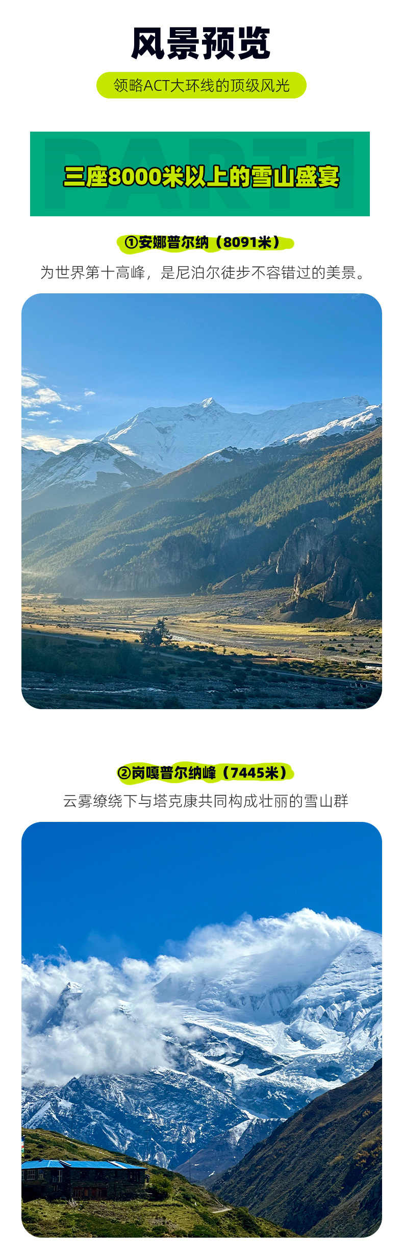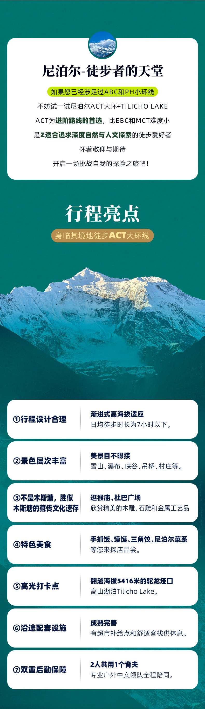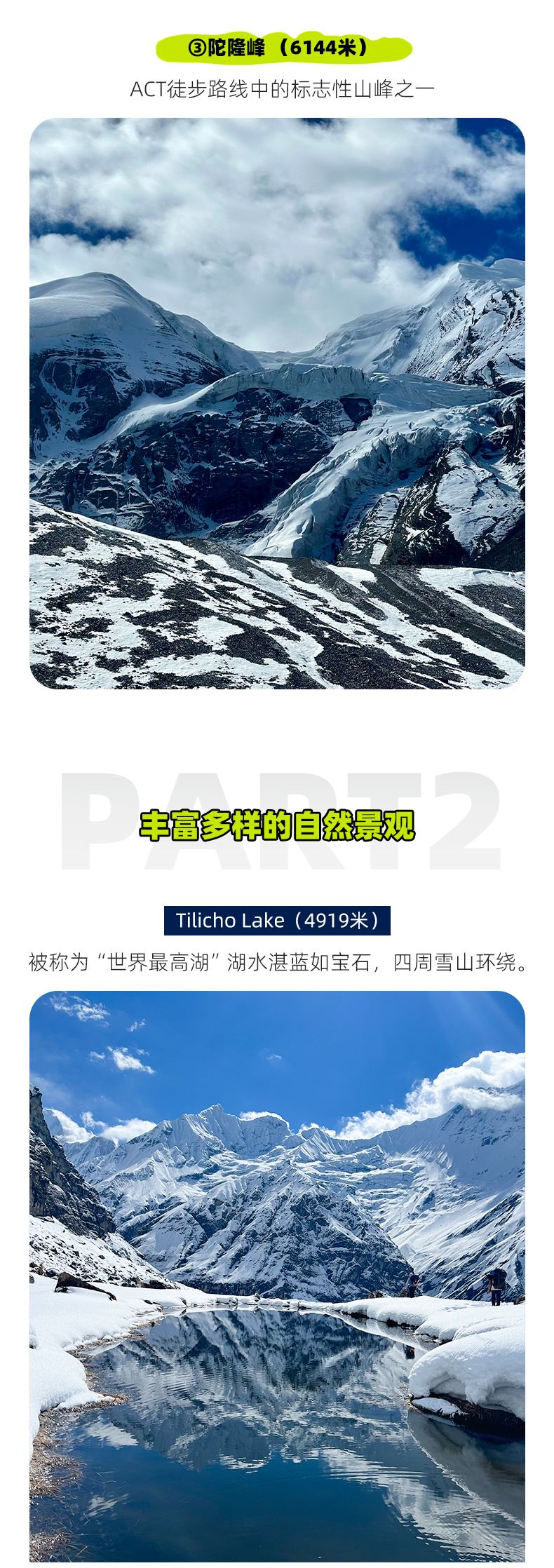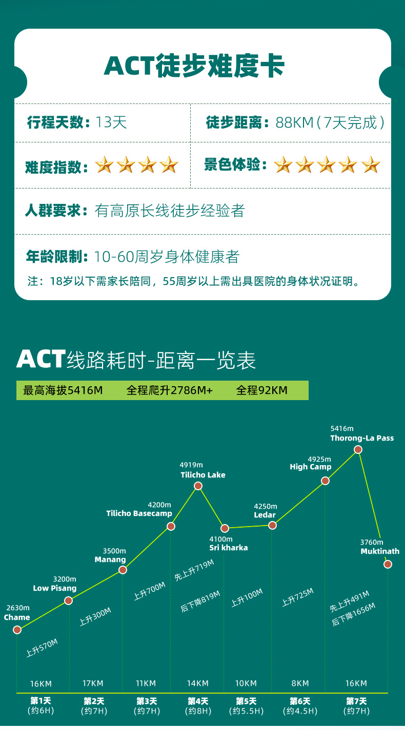 (1)ACT是尼泊尔高海拔最早被开发的线路,Manang海拔3500米,是重要的高海拔适应点;