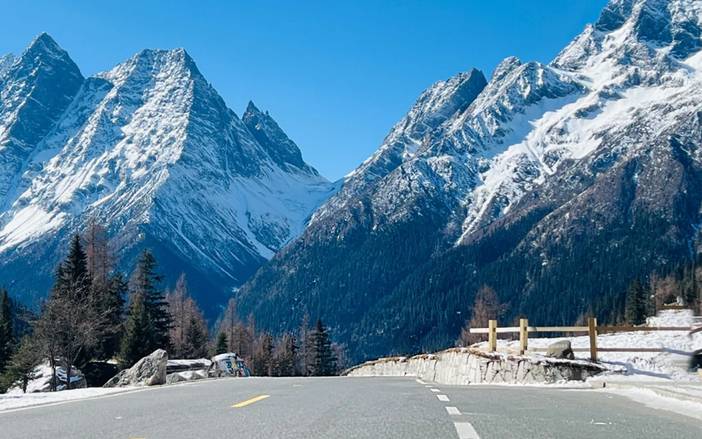 (5)路况:川西整体路况良好,春季偶有降雪,高山垭口、道路阴面多有冰雪,路面较滑;